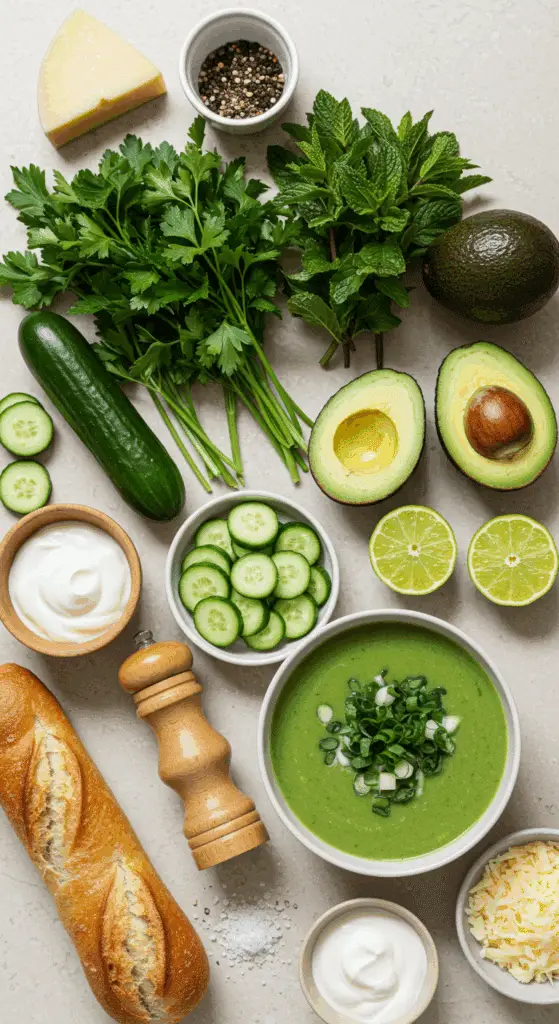 Craving a light, creamy dish that’s ready in a flash? This 15-Minute Cucumber-Avocado Blender Soup is your perfect choice! Featuring crisp English cucumbers, creamy avocados, fresh parsley, mint, lime juice, and Greek yogurt, this chilled soup is a vibrant blend of cool, tangy, and herbaceous flavors. Paired with a cheesy Asiago baguette and a zesty lime-yogurt garnish, it’s ideal for quick lunches, light dinners, or hot summer days. Inspired by your love for veggie-forward dishes like Beet Gazpacho and Cucumber Quinoa Salad, it’s vegetarian and adaptable for vegan or keto diets. Ready to blend up a refreshing meal? Let’s dive into this easy recipe!