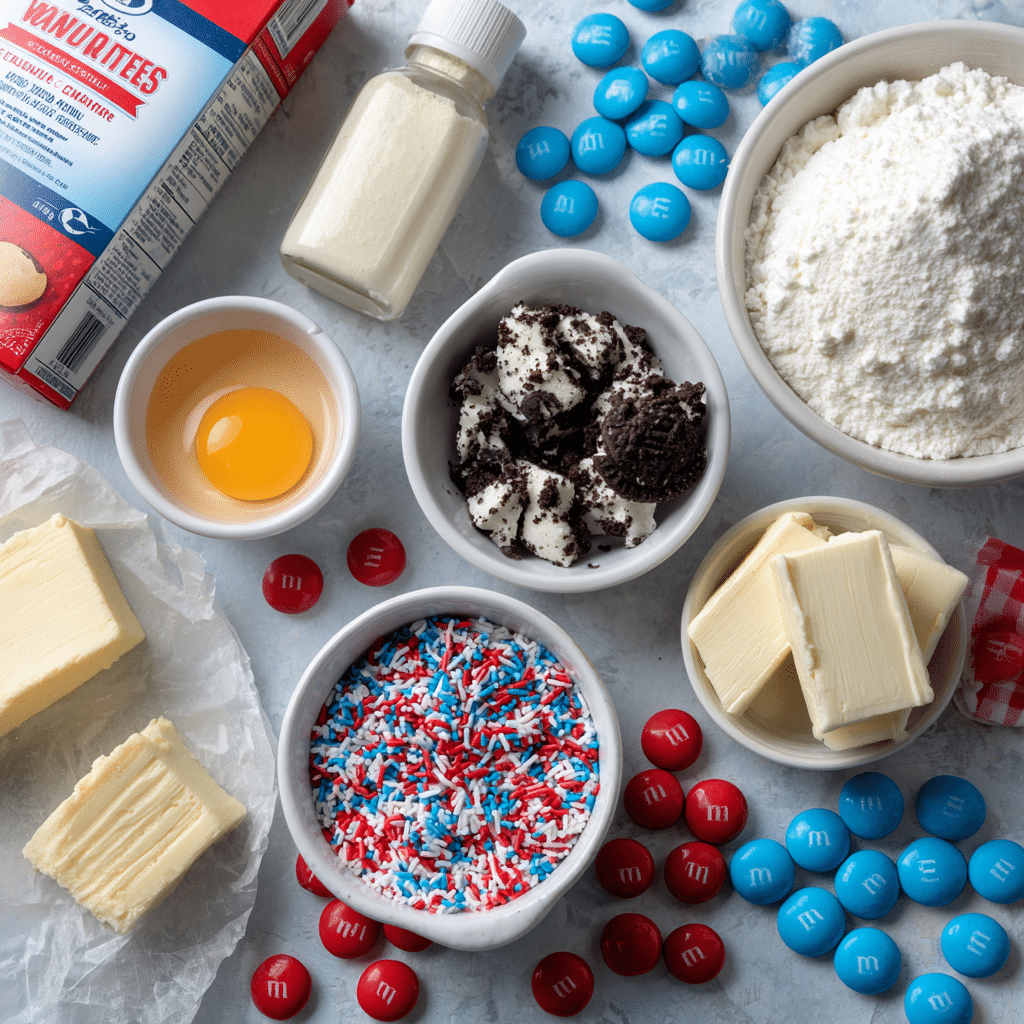 The magic of 4th of July Fireworks Cookies comes from simple ingredients that create a soft, flavorful cookie with a patriotic twist. Here’s what you’ll need and why each matters: