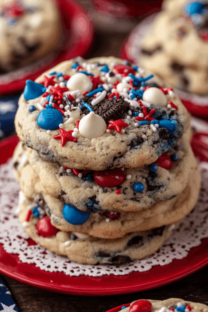 • S’mores Patriot Cookies: Add ¼ cup mini marshmallows and crushed graham crackers for a campfire vibe.