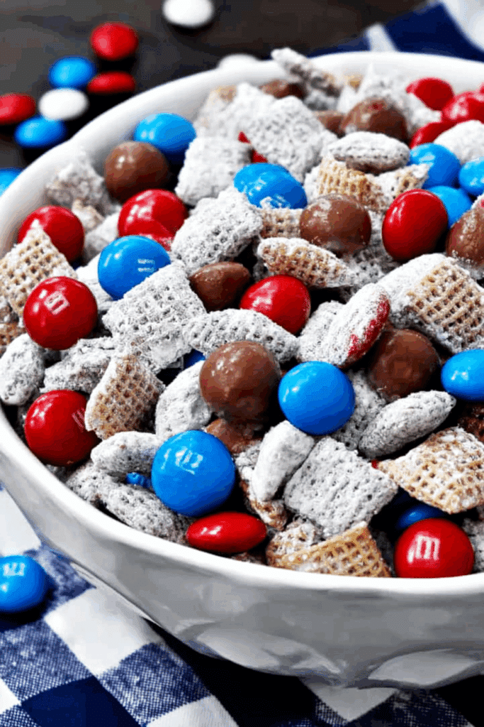 This 4th of July Snack Mix is the ultimate no-bake treat for patriotic celebrations! With its chocolatey cereal, sweet powdered sugar, and colorful M&M’s and Whoppers, it’s perfect for 4th of July parties, picnics, or family snack time. It’s a lighter treat with portion control, super quick to make, and so fun to customize. Grab your ingredients, get the kids to help shake the bag, and create this festive munchie magic. Share your snack mix creations in the comments—I’d love to see your patriotic colors!