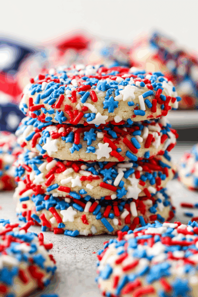- Presentation Tip: Display cookies in a star pattern on a tray or in a festive jar with small American flag picks. Scatter extra sprinkles or add patriotic napkins for a 4th of July vibe!