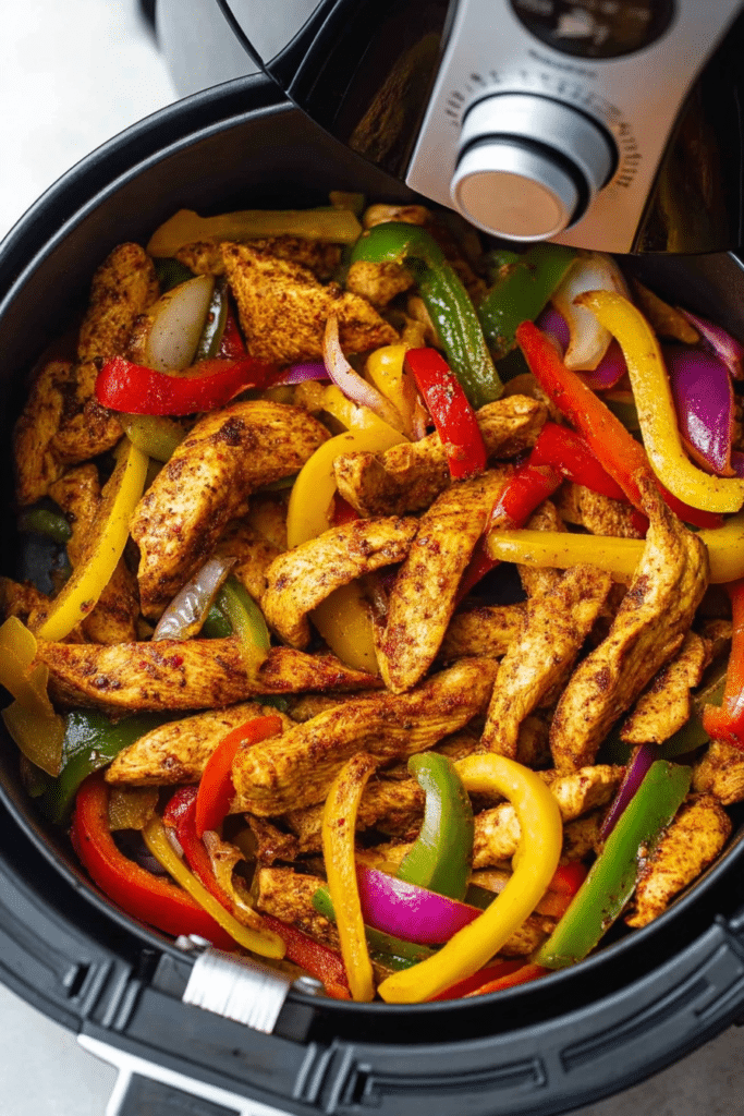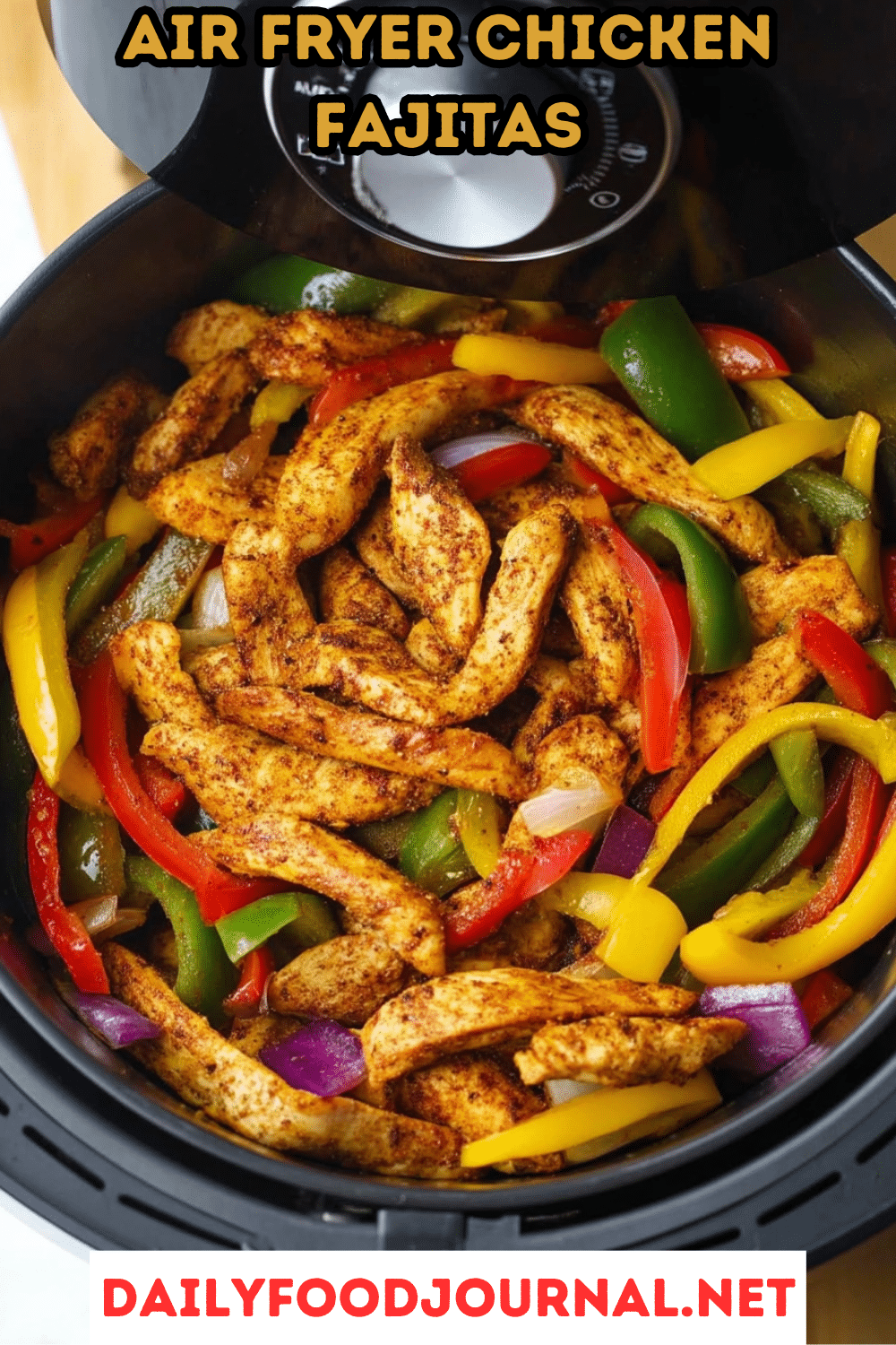Make Air Fryer Chicken Fajitas in just 20 minutes. Juicy chicken, colorful veggies, and bold fajita seasoning come together for an easy, healthy meal perfect for busy weeknights!