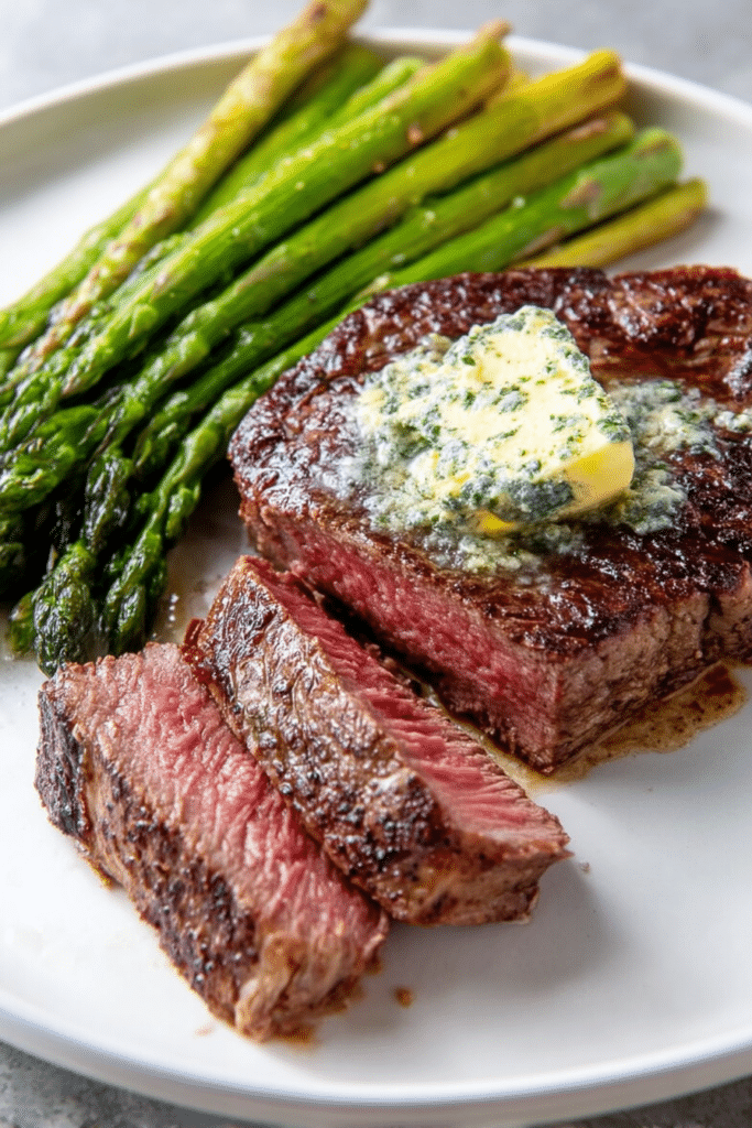 A thick-cut ribeye around 1½ inches ensures you get a juicy inside without overcooking the outside.