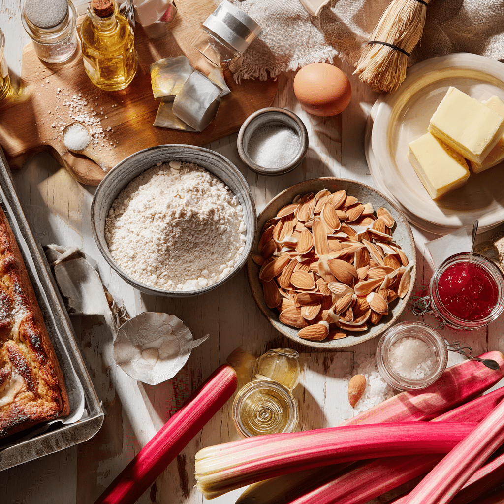 Pro Tip: Weigh ingredients (e.g., 125 grams flour, 75 grams almonds) for precision. Toast almonds (350°F, 8-10 minutes) for deeper flavor; trim rhubarb’s woody ends and select pinker stalks for a vibrant ombré look.