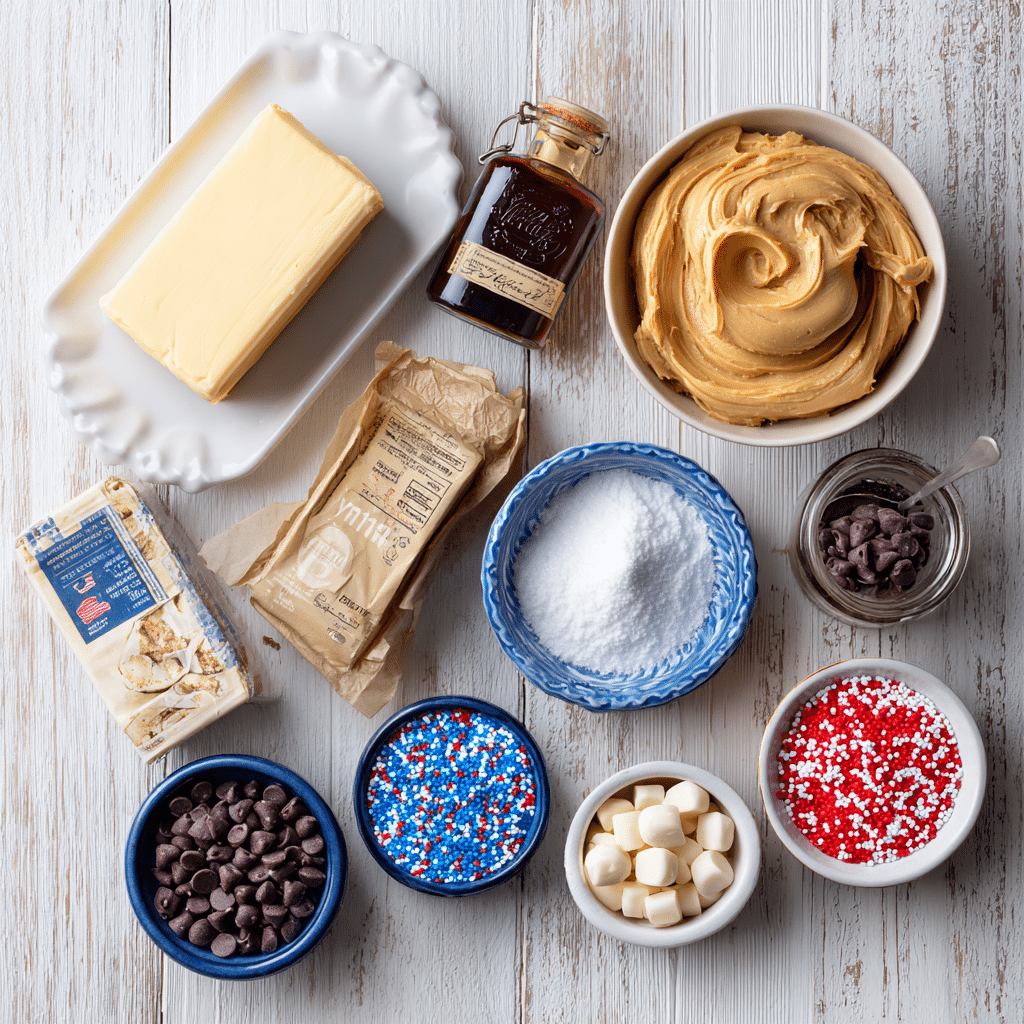 A delicious American Flag Peanut Butter Dip starts with simple ingredients. Here’s what you’ll need for a 9×13-inch flag-shaped dip (serves 8-12):