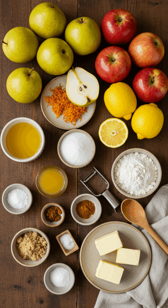 Apple and Pear Crisp uses seasonal fruits and pantry staples for a rich, flavorful result. Here’s what you’ll need for 8 servings: