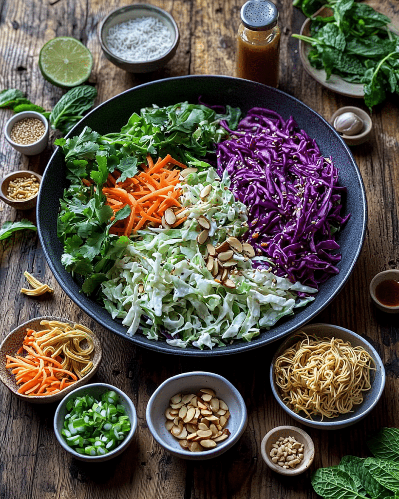 It’s the perfect mix of crisp vegetables, a zesty, savory dressing, and all the little touches—like crunchy ramen noodles and fresh herbs—that make every bite exciting.