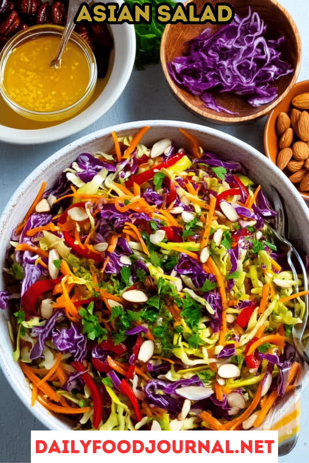 Make this fresh and crunchy Asian Salad! Crisp veggies, savory dressing, and optional ramen crunch make it the perfect side or light meal. Vegan, gluten-free, and customizable.
