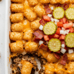 Why These Ingredients Matter: The beef and bacon provide protein and smoky flavor, while the tomato sauce and cheeses create a rich, burger-like filling. The tater tots add a crispy topping, and fresh tomatoes and pickles bring a classic cheeseburger vibe, making this a balanced, indulgent meal perfect for comfort food lovers.