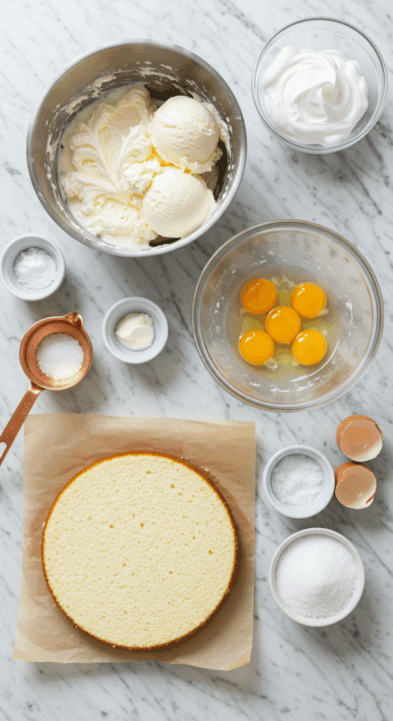 - Cake Base: Use a sturdy, even layer to support the ice cream and meringue.