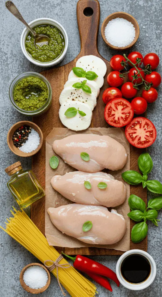 Here’s what you need to make this Baked Caprese Chicken Skillet. Each ingredient adds to the savory, cheesy, and summery magic.