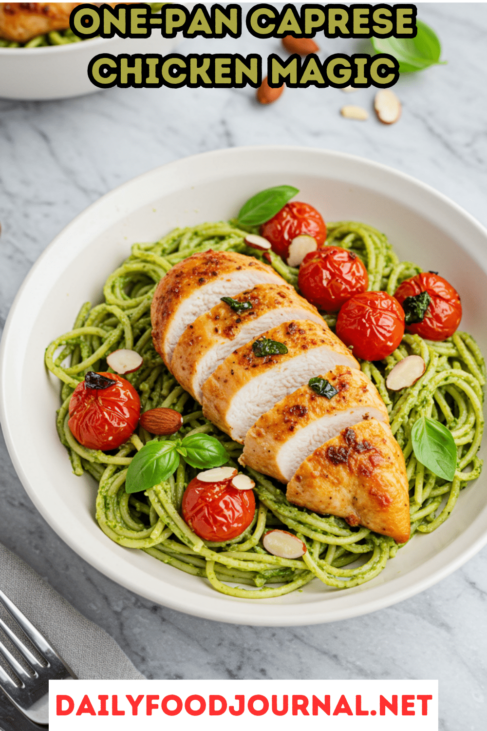 • Keto Caprese Chicken: Swap spaghetti for zucchini noodles or cauliflower rice, use sugar-free pesto and balsamic, and reduce cherry tomatoes to ½ pint (~5g net carbs per serving).