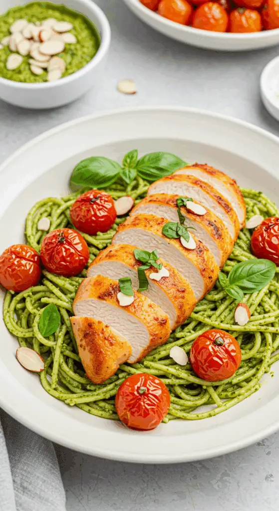 • Spicy Version: Add ½ tsp red pepper flakes to the pesto or sprinkle over the chicken before baking.