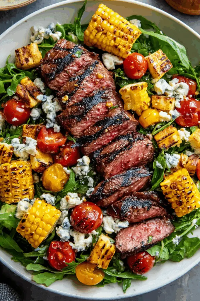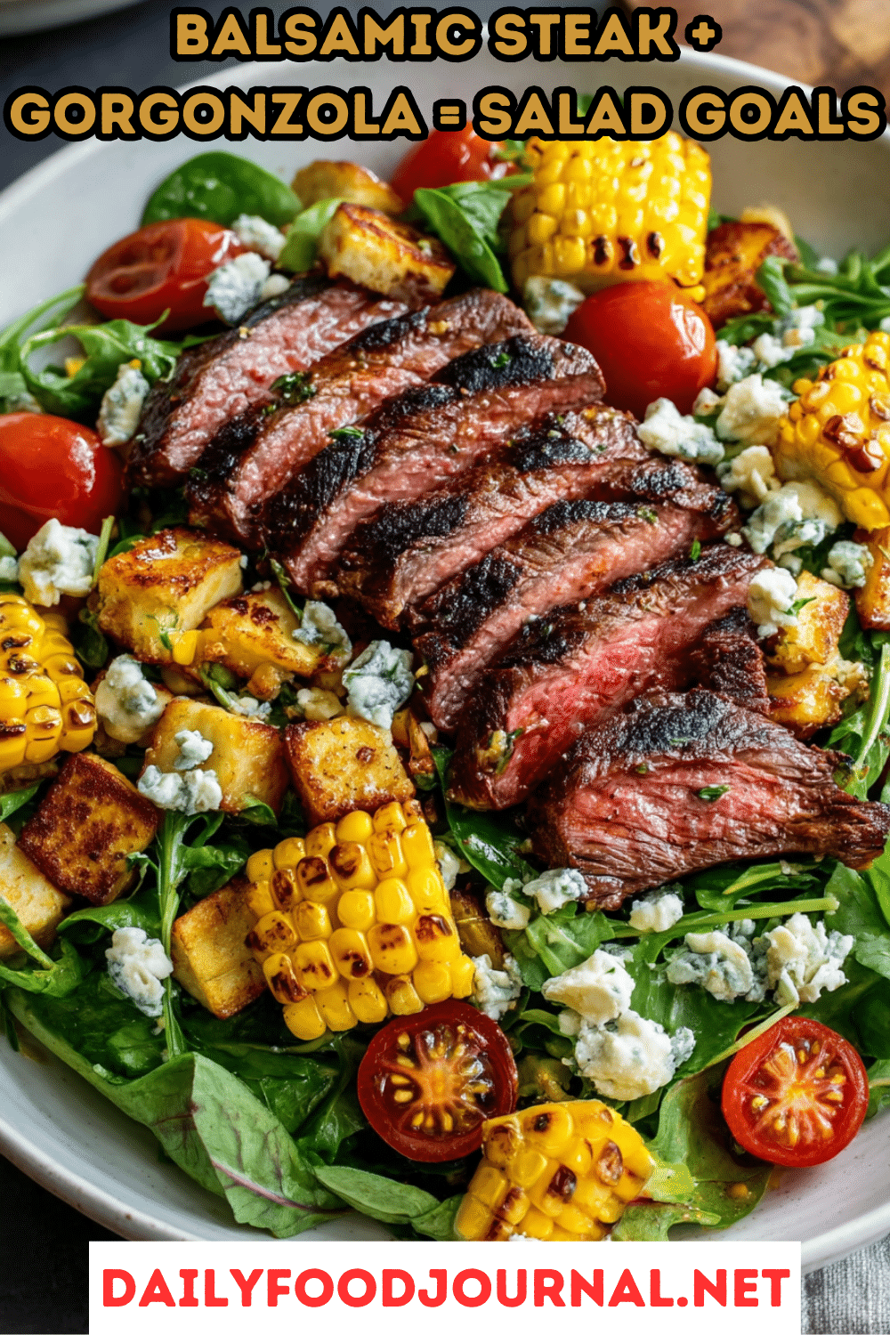 Follow these steps to create Balsamic Steak Gorgonzola Salad with Grilled Corn that’s vibrant, hearty, and bursting with flavor: