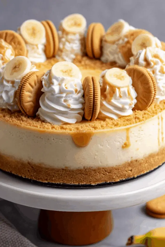 Topped with whipped cream, fresh banana slices, and more Nilla wafers, this cheesecake is not just a dessert—it’s a full-on experience. It looks impressive, tastes like heaven, and is guaranteed to be the star of any celebration.