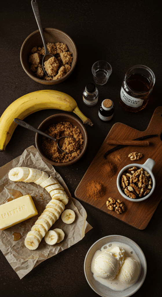 Bananas Foster requires just a few ingredients, but each one plays a big role in creating its signature flavor. Here’s what you’ll need for 4 servings: