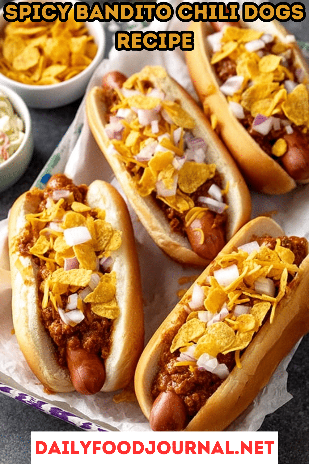 Assembling Bandito Chili Dogs is all about piling on bold flavors and textures for a fun, hearty meal. Here’s how to put it together: