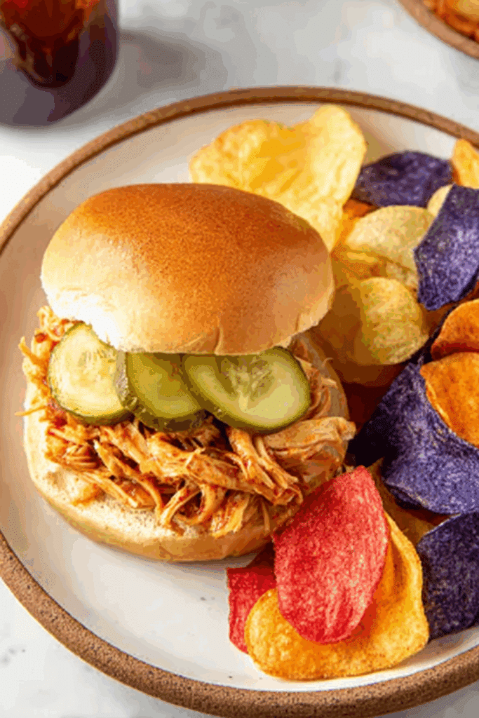 - Why It’s Unique: The homemade barbecue sauce, made with salsa, ketchup, and spices, adds a unique tangy-spicy kick to tender shredded chicken. The quick simmer melds flavors fast, and the toasted buns with optional pickles deliver a satisfying texture and zing, making these sandwiches a perfect mix of comfort and convenience.