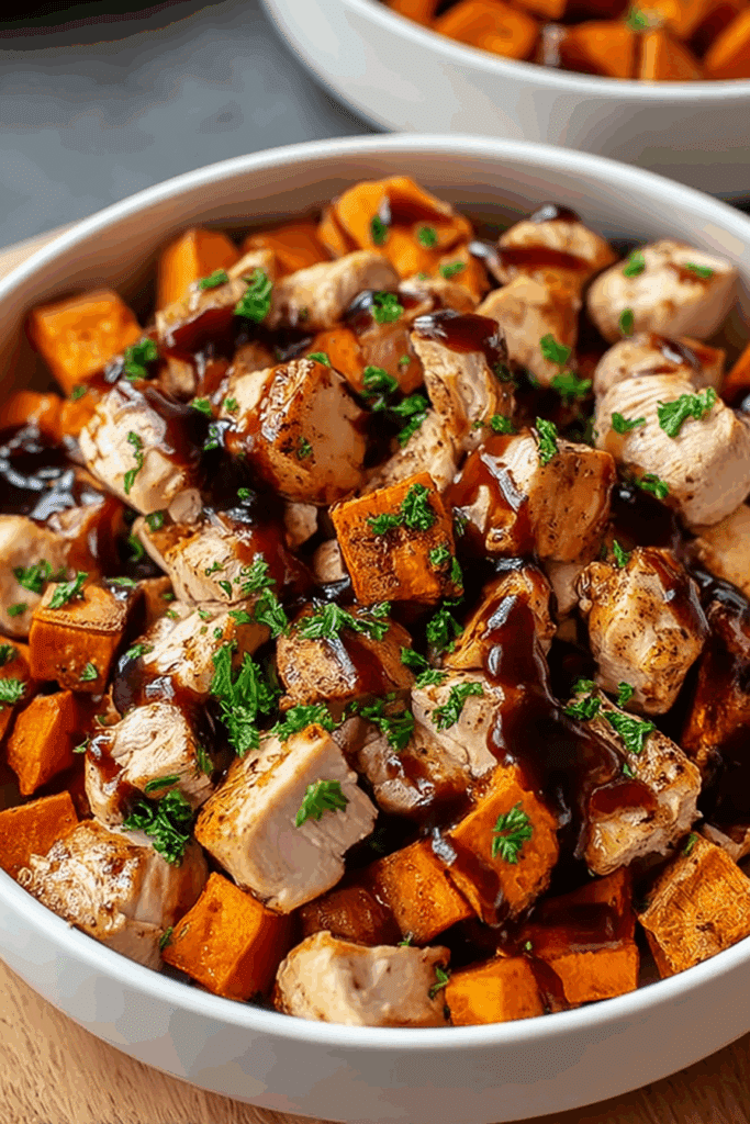 You’ve just created a BBQ Chicken Sweet Potato Bowl that’s hearty, flavorful, and totally customizable! This wholesome meal is perfect for busy weeknights, meal prep, or impressing guests with its bold, smoky-sweet taste. With tender chicken, caramelized sweet potatoes, and vibrant toppings, every bite is a delight. Play with toppings, sauces, or proteins to make it your own. Dig in, share with friends, or save some for lunch tomorrow—you’ve earned it! Share your bowl creations in the comments or on social media. Happy cooking!