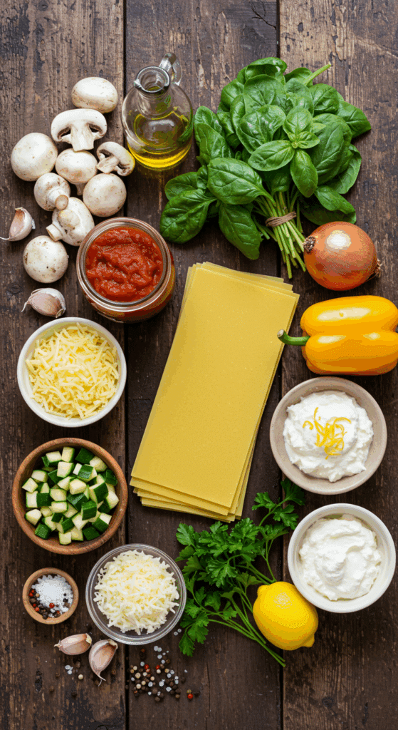 To make the Best Vegetarian Lasagna for 8 servings, you’ll need these key ingredients. Each one adds a layer of flavor or texture to this comforting dish:
