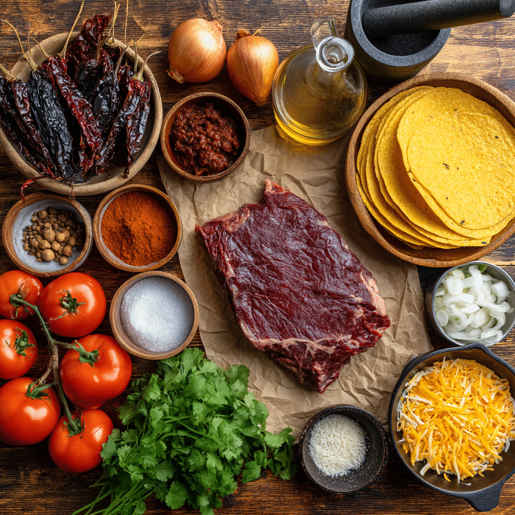 These birria tacos come together with ingredients that create a deeply flavorful dish. Here’s what you need and why each matters: