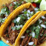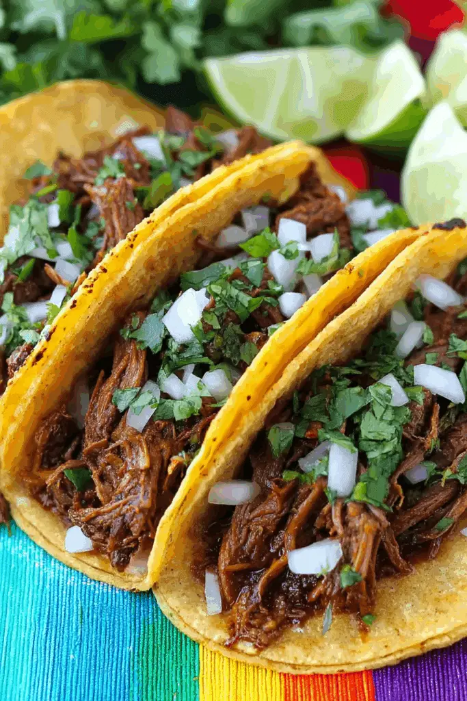 Craving a rich, flavorful Mexican dish that’s perfect for sharing? Birria de Res Tacos (Beef Birria Tacos) are the ultimate treat! These tacos feature tender, slow-cooked beef chuck roast braised in a vibrant, smoky chile sauce, served in crispy corn tortillas with melted queso asadero, onions, and cilantro, with a side of savory consomé for dipping.