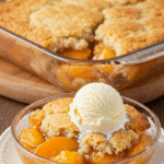 • Mini Peach Cobblers: Divide into 6 ramekins for individual servings, reducing baking time to 35–40 minutes.