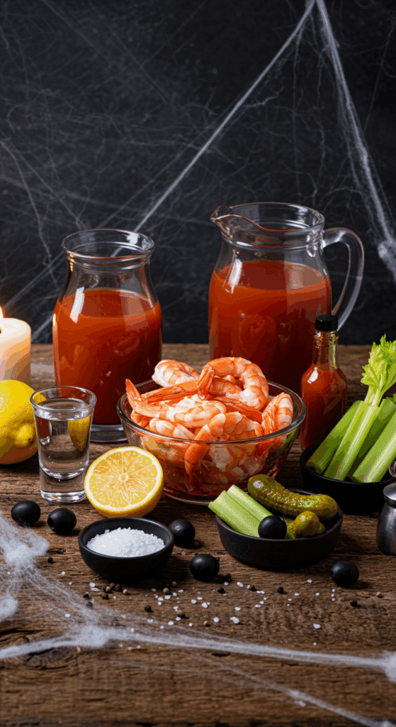 Assembling Bloody Mary Shrimp Cocktail is where the Halloween haunt shines! Think of it as crafting a vampire’s sip: chilled shrimp as the base, red sauce as the “blood,” and garnishes as the creepy accents.