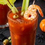 Bloody Mary Shrimp Cocktail is like a sip of spooky sophistication—juicy, cooked shrimp chilled in a vibrant, tangy sauce inspired by the famous drink, complete with a kick of heat and fresh garnishes that add a Halloween haunt. What sets it apart? The “bloody” red hue from tomato juice and hot sauce gives it an eerie, festive look, while the zesty flavors make it a refreshing, crowd-pleasing appetizer. No cooking needed if using pre-cooked shrimp—prep and chill take about 10 minutes total, making it a quick win for serving four.