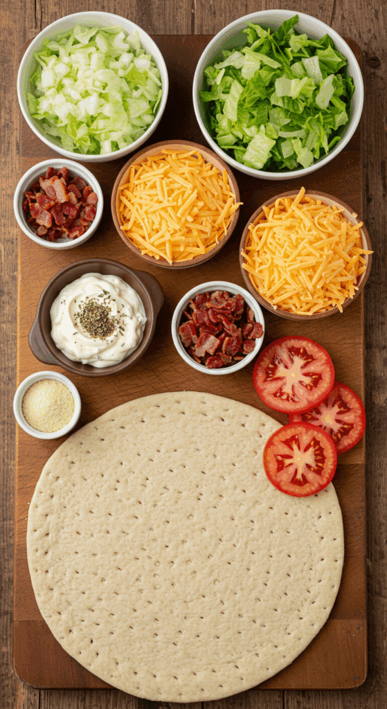 To make a BLT Pizza that serves 6, you’ll need these key ingredients. Each one brings a piece of the BLT magic to the table: