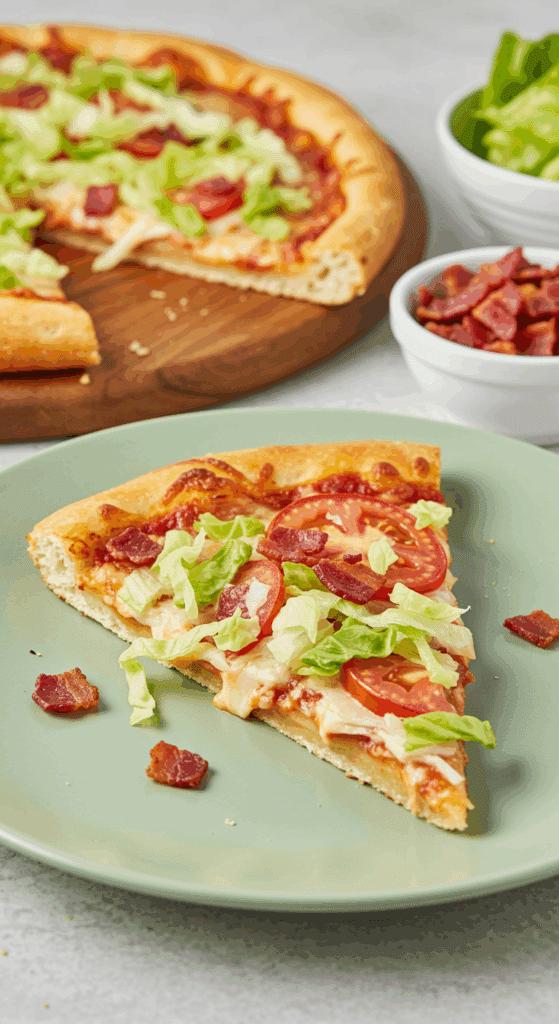 The BLT Pizza is a quick, delicious way to bring the classic sandwich flavors you love to pizza night. With its crispy crust, creamy herby sauce, melty cheese, smoky bacon, and fresh veggies, it’s a crowd-pleaser that’s ready in just 25 minutes. Perfect for family dinners, game nights, or casual hangouts, this pizza is as fun to make as it is to eat. Try it as is or experiment with your own twists—maybe a spicy kick or extra veggies? Share your creations with us! Grab your ingredients, preheat that oven, and enjoy every cheesy, crispy bite!