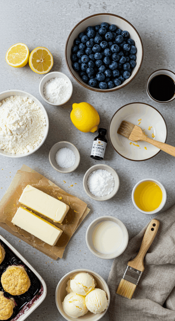 Here’s what you need to make this Blueberry Cobbler. Each ingredient adds to the juicy, golden, and comforting magic.
