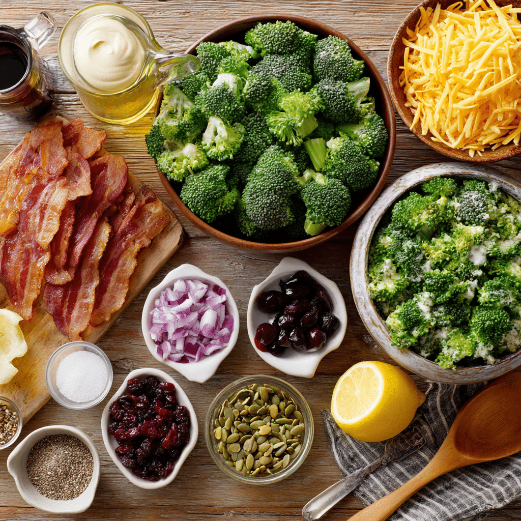 This broccoli salad comes together with ingredients that create a crunchy, flavorful dish. Here’s what you need and why each matters: