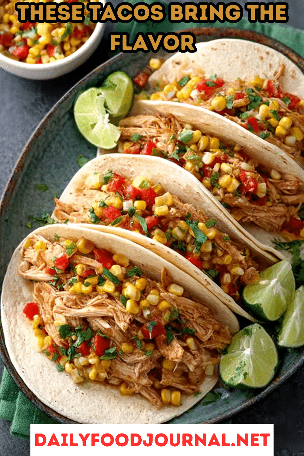 - Fill Tacos: Spoon the chicken mixture onto each tortilla, then top with a scoop of corn salsa.