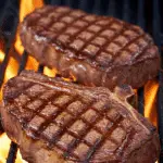 • Move steaks to a cooler part of the grill (medium heat, about 350°F/175°C); cook for 2-3 minutes per side for medium-rare (135°F/57°C) or to desired doneness (145°F/63°C for medium, 160°F/71°C for well-done).