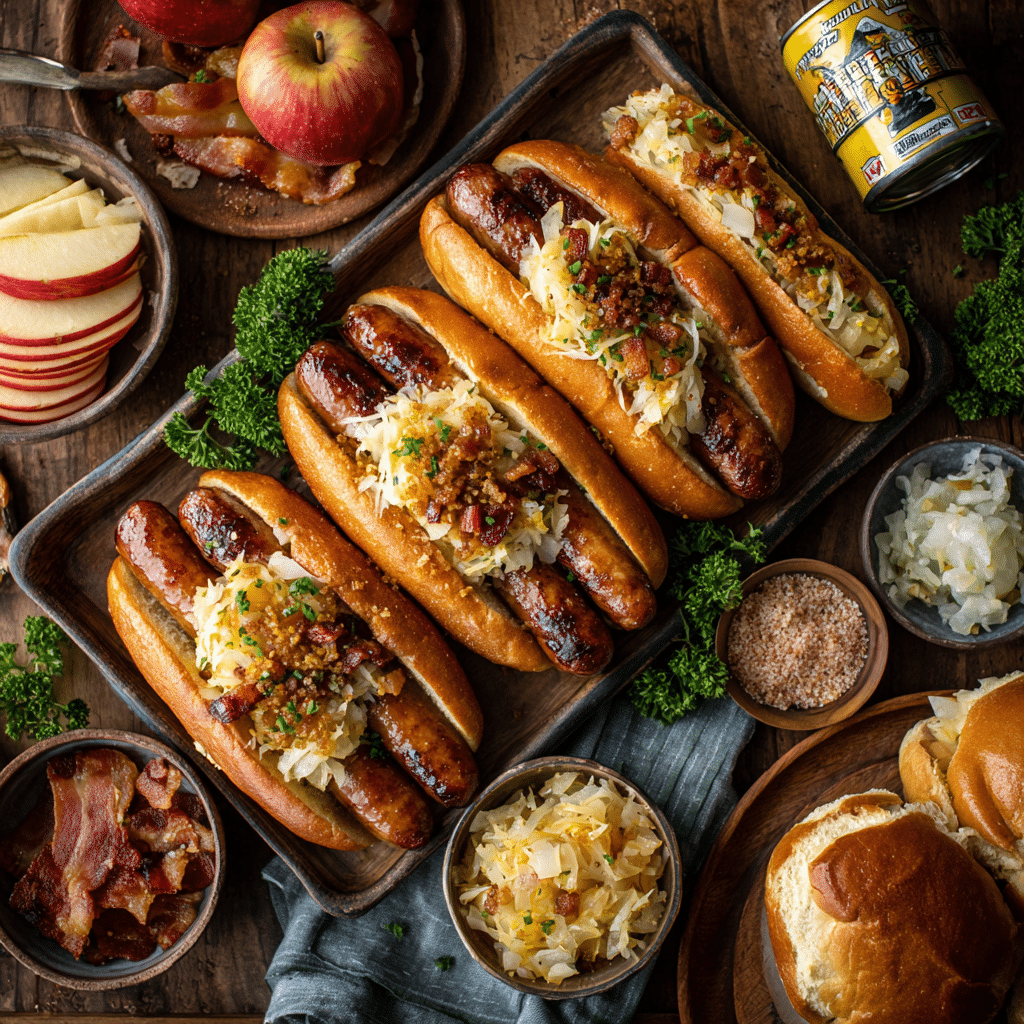 Want a delicious, comforting dish that’s perfect for game days, family dinners, or backyard gatherings? Brats with Sauerkraut is the ultimate recipe! This slow-cooker meal combines juicy bratwurst with tangy sauerkraut, sweet apples, and savory bacon, all enhanced with brown sugar and mustard for a perfect balance of flavors. Served on soft brat buns, it’s an easy, crowd-pleasing dish with bold German-inspired taste