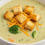 Why These Ingredients Matter: The broccoli and carrots provide fiber and nutrients, while the cheddar and milk create a creamy, indulgent texture. The mustard and garlic add depth, and optional croutons bring crunch, making this a balanced, comforting meal perfect for vegetarian diets.