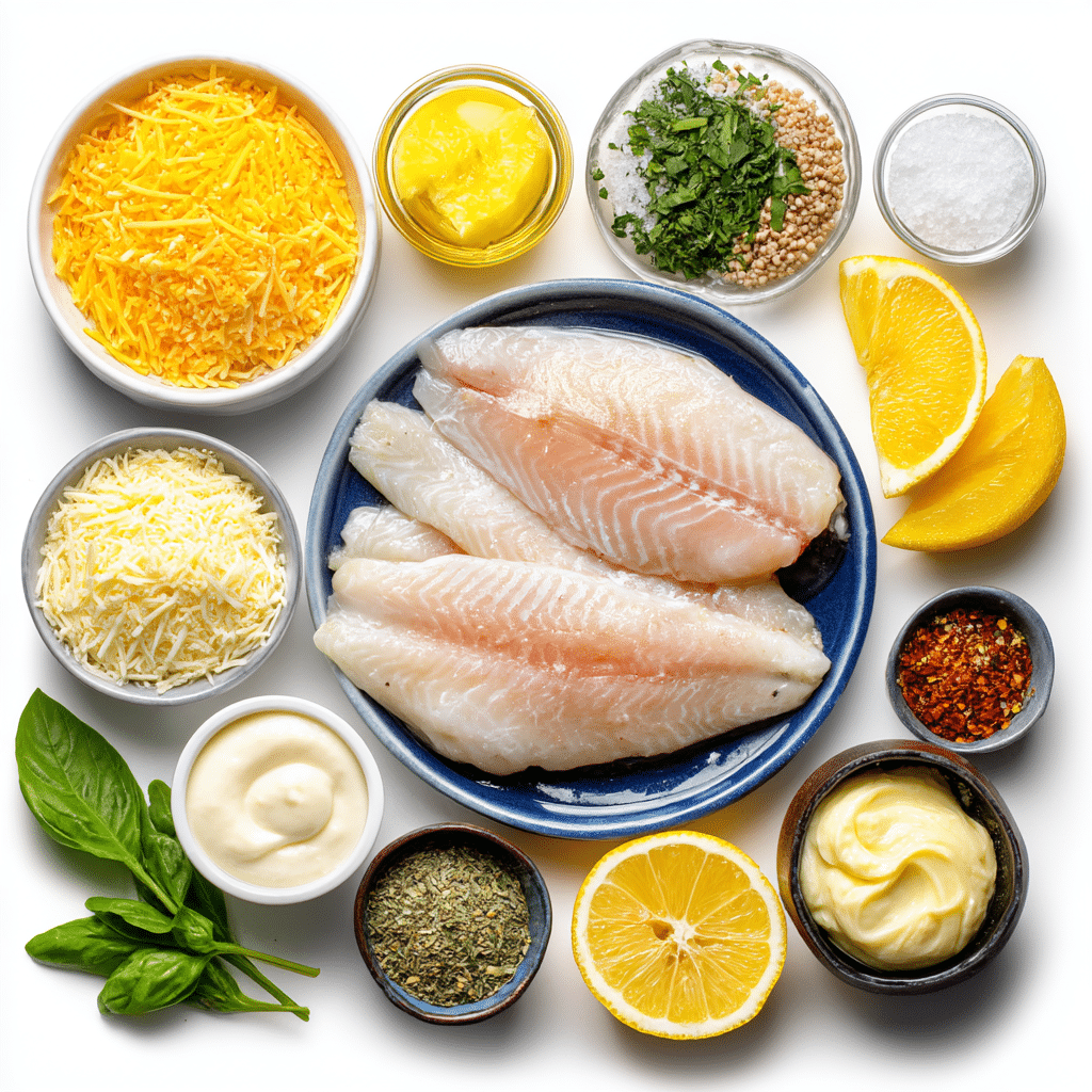 - Make the Topping: Mix a creamy, cheesy Parmesan blend to coat the fish.