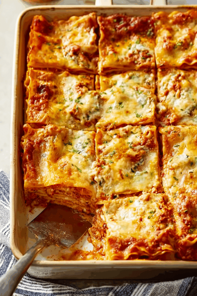 Pro Tip: Let the lasagna rest before cutting to keep the layers intact.