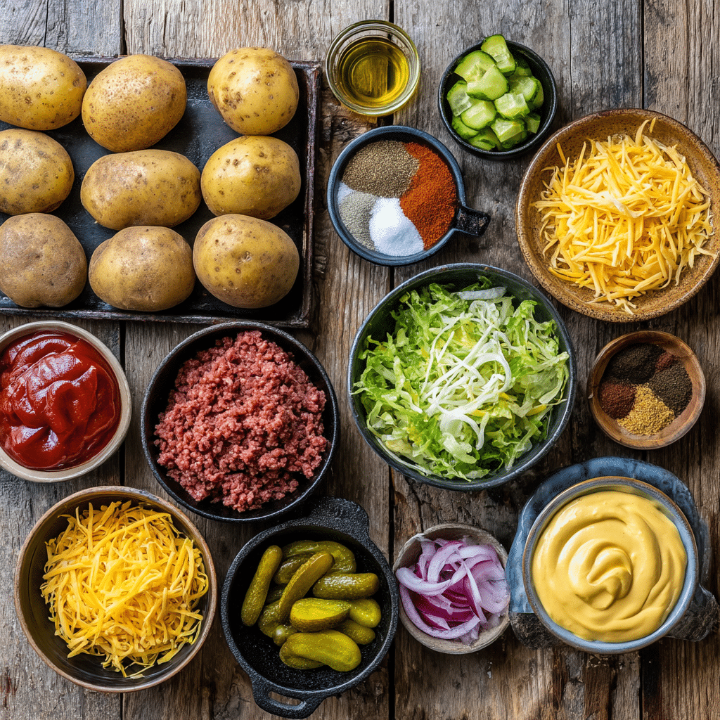 This burger bowl comes together with ingredients that create a flavorful, balanced dish. Here’s what you need and why each matters: