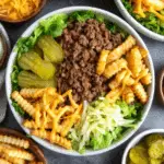 Craving the classic flavors of a burger without the bun? Burger Bowls are the perfect solution! This deconstructed burger features seasoned beef mince, crispy oven-baked potato fries, fresh lettuce, cheese, pickles, and a tangy burger sauce, all layered in a vibrant, satisfying bowl. Ideal for quick weeknight dinners, meal prep, or a fun twist on burger night, this recipe is customizable and beginner-friendly. Curious about how to create this delicious, low-carb meal? Let’s dive into this easy recipe that’s sure to become a family favorite!