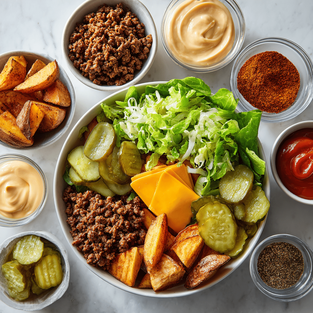 This recipe uses simple ingredients to recreate the iconic burger experience in bowl form. Each component is key to building bold flavors and satisfying textures. Here’s the list, with why each matters and substitution ideas.