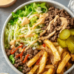You’ve just created Burger Bowls that are packed with all the flavors of a classic burger, minus the bun! This quick, customizable dish is perfect for weeknight dinners, meal prep, or casual gatherings, delivering bold, satisfying flavors with minimal effort. With crispy potatoes, savory beef, and a tangy burger sauce, every bite is a delight. Play with toppings, spices, or bases to make it your own. Dig in, share with friends, or save for lunch tomorrow—you’ve earned it! Share your bowl creations in the comments or on social media. Happy cooking!