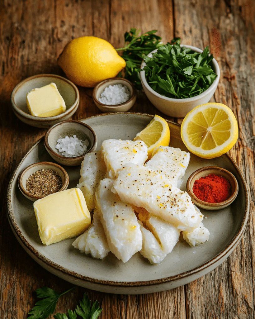 Fresh cod fillets are ideal because they are mild, flaky, and take on flavors beautifully. Unsalted butter allows better control over seasoning and adds luxurious richness to the dish. Garlic powder and onion powder bring subtle depth and aromatic warmth to the seasoning mix. Paprika adds a hint of smoky sweetness and beautiful color to the cod. Salt and black pepper are essential for enhancing all the natural flavors. Freshly squeezed lemon juice brightens the dish and cuts through the richness of the butter. Chopped fresh parsley adds a fresh, herbaceous finish and a pop of vibrant green color.