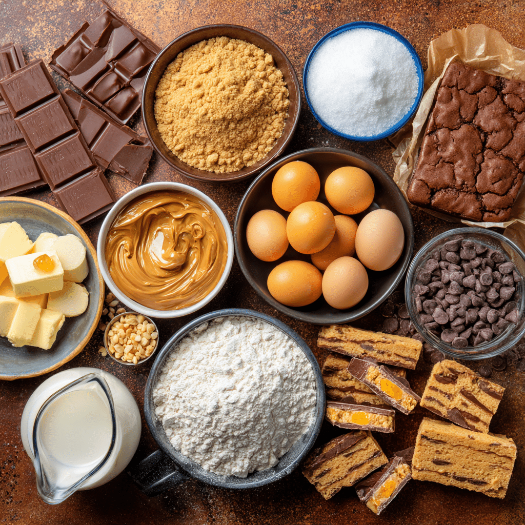 The magic of Slow Cooker Butterfinger Brownie Cake comes from its rich, indulgent ingredients. Each one adds chocolatey depth, peanut butter creaminess, or crunchy texture to create a cohesive, Butterfinger-inspired dessert. Here’s what you’ll need: