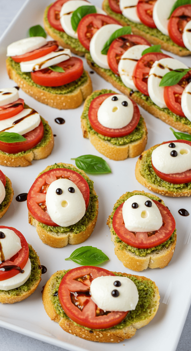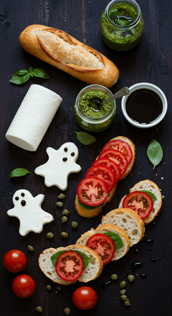 The Caprese Crostini Ghosts are all about combining fresh flavors with a spooky presentation. Here’s how to make them a Halloween hit: