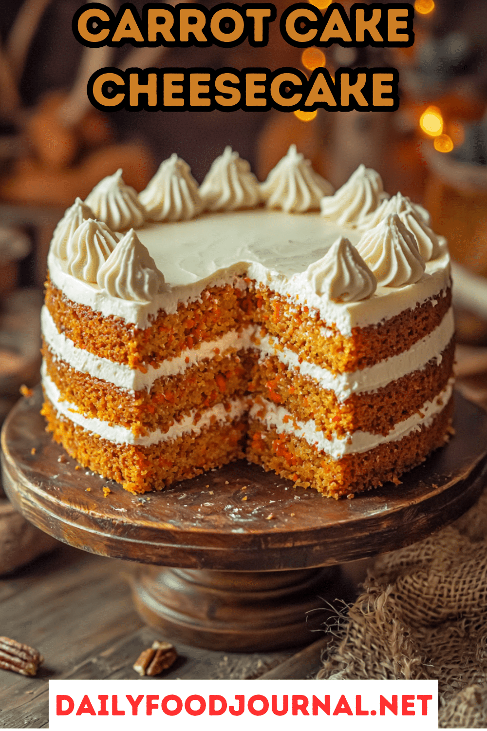 Carrot cake and cheesecake are both classic desserts that evoke a sense of nostalgia and comfort. They remind me of holidays, family gatherings, and special celebrations. This combines both.