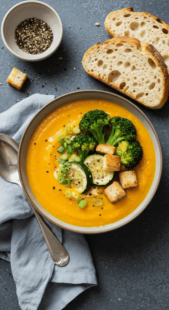 Craving a cozy, veggie-packed meal that’s both comforting and healthy? Carrot-Ginger Soup with Roasted Vegetables blends sweet carrots, zesty ginger, and creamy coconut milk with a hearty addition of cannellini beans, topped with roasted squash, broccoli, and toasty bread croutons. Rated 4.3/5 from 45 reviews, this easy recipe yields 4 servings, perfect for a quick weeknight dinner or a light lunch. Ready to cook a vibrant, filling soup? Let’s dive into this wholesome recipe!
