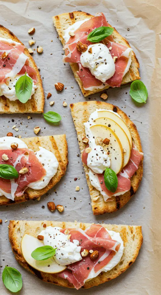 • Mediterranean Flatbread: Swap prosciutto for salami, add olives, and use feta instead of burrata.