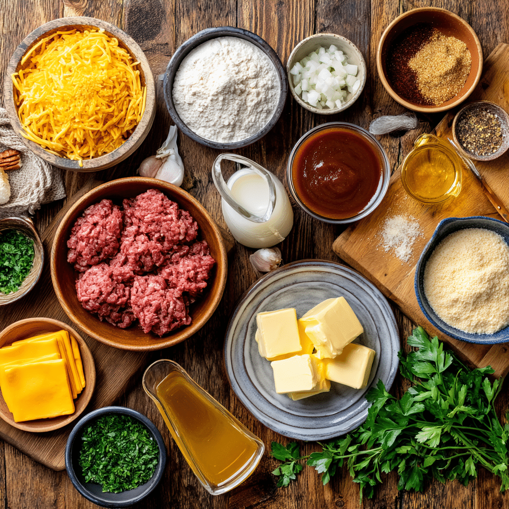 The magic of Slow Cooker Cheddar Bay Ground Beef Cobbler comes from its rich, savory ingredients. Each one adds flavor, texture, or comfort to create a cohesive, crowd-pleasing dish. Here’s what you’ll need: